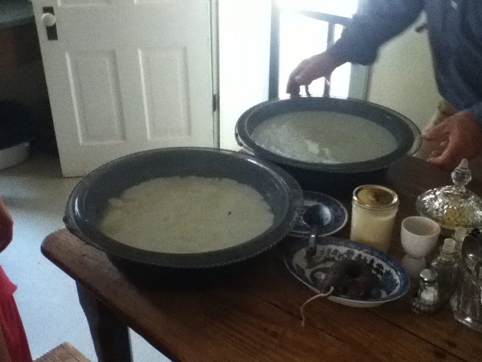 This was the fresh milk from their cow, turning to cottage cheese and yogurt (…or something).