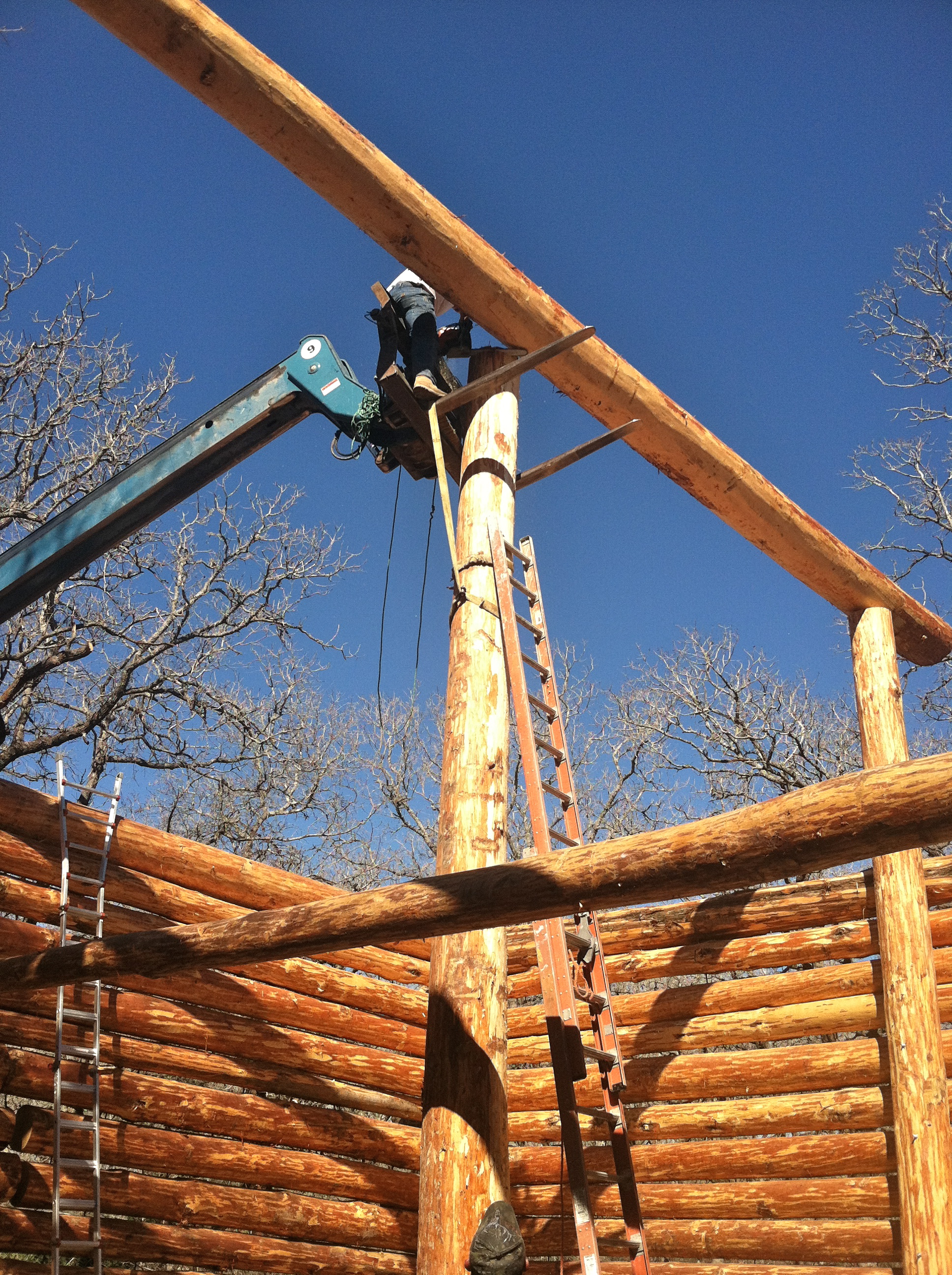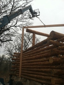 Up went the 3rd RPSL. The one that will be in the center of our house, that helps hold up our ridge log…the peak of our roof.
