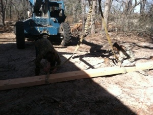 I am really enjoying your blog and this is one post that I can identify with 100%! I operate the crane while my husband positions the logs and pounds the rebar. We use walkie-talkies when we can’t see each other, but sometimes he has no hands free to operate the thing, or he pushes the button– sort of– and I only hear half a syllable. What was that again? Scary…