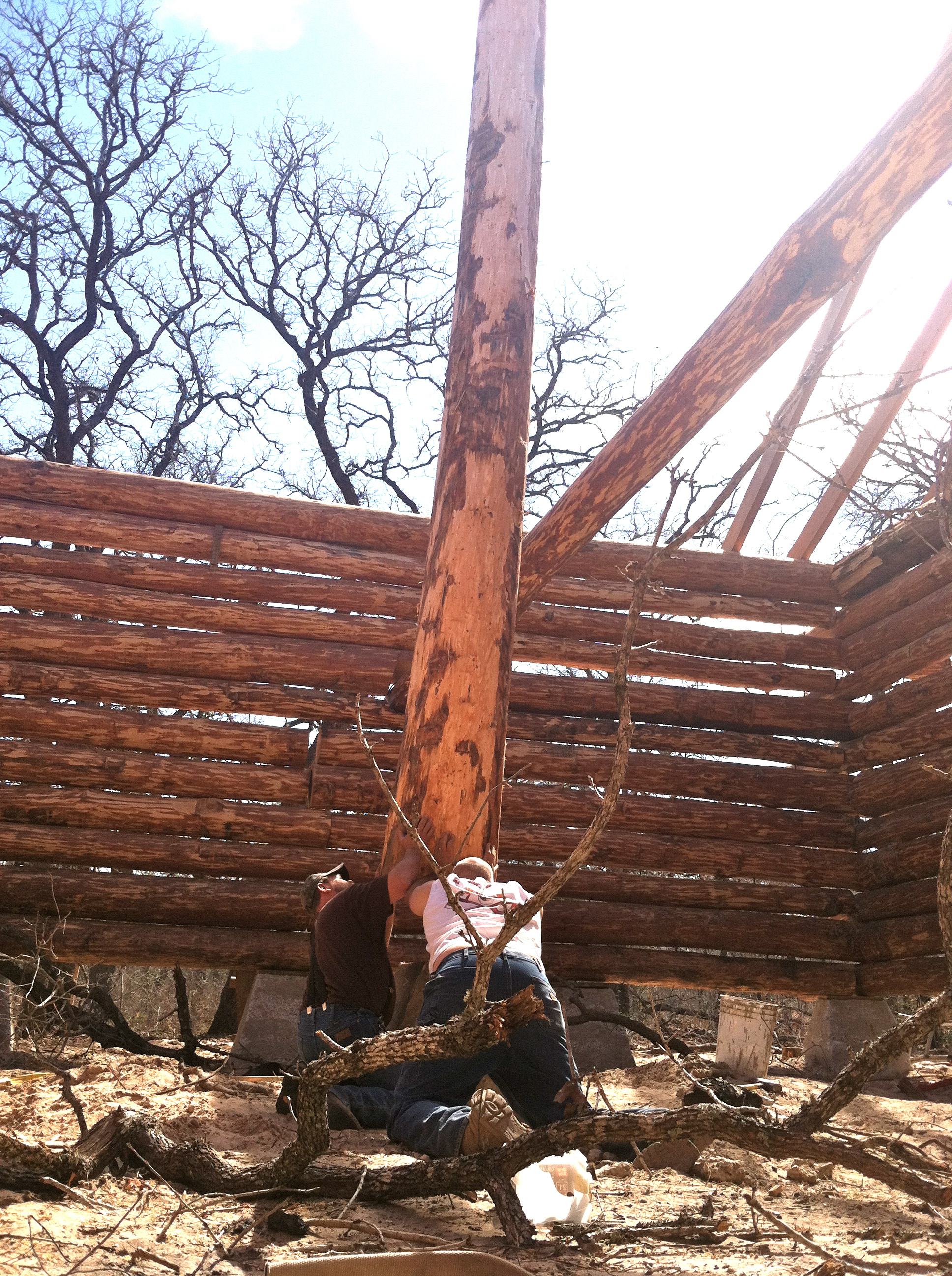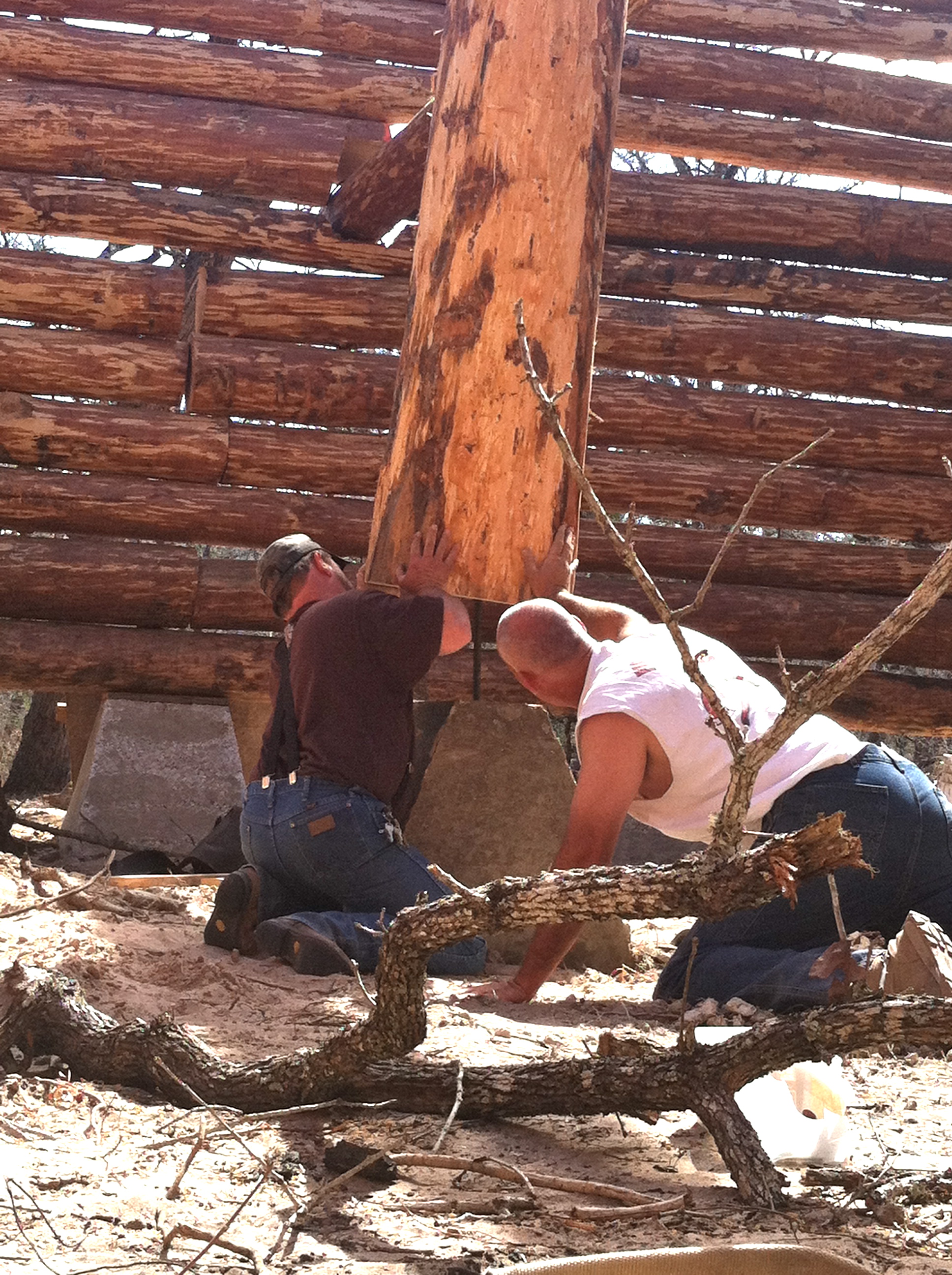 Buuuuut, with the Ridge log in place, how do you insert the RPSL on top of the concrete pyramid, down upon the rebar, and then slide it under the firmly rooted Ridge? Hmmm…. It was quite the enigma, and the perfect time for God to show off His timing, yet again.