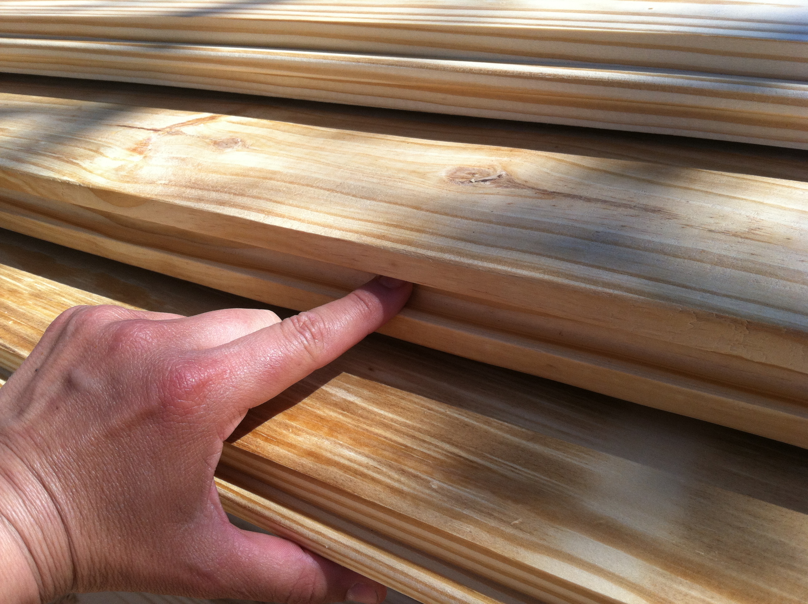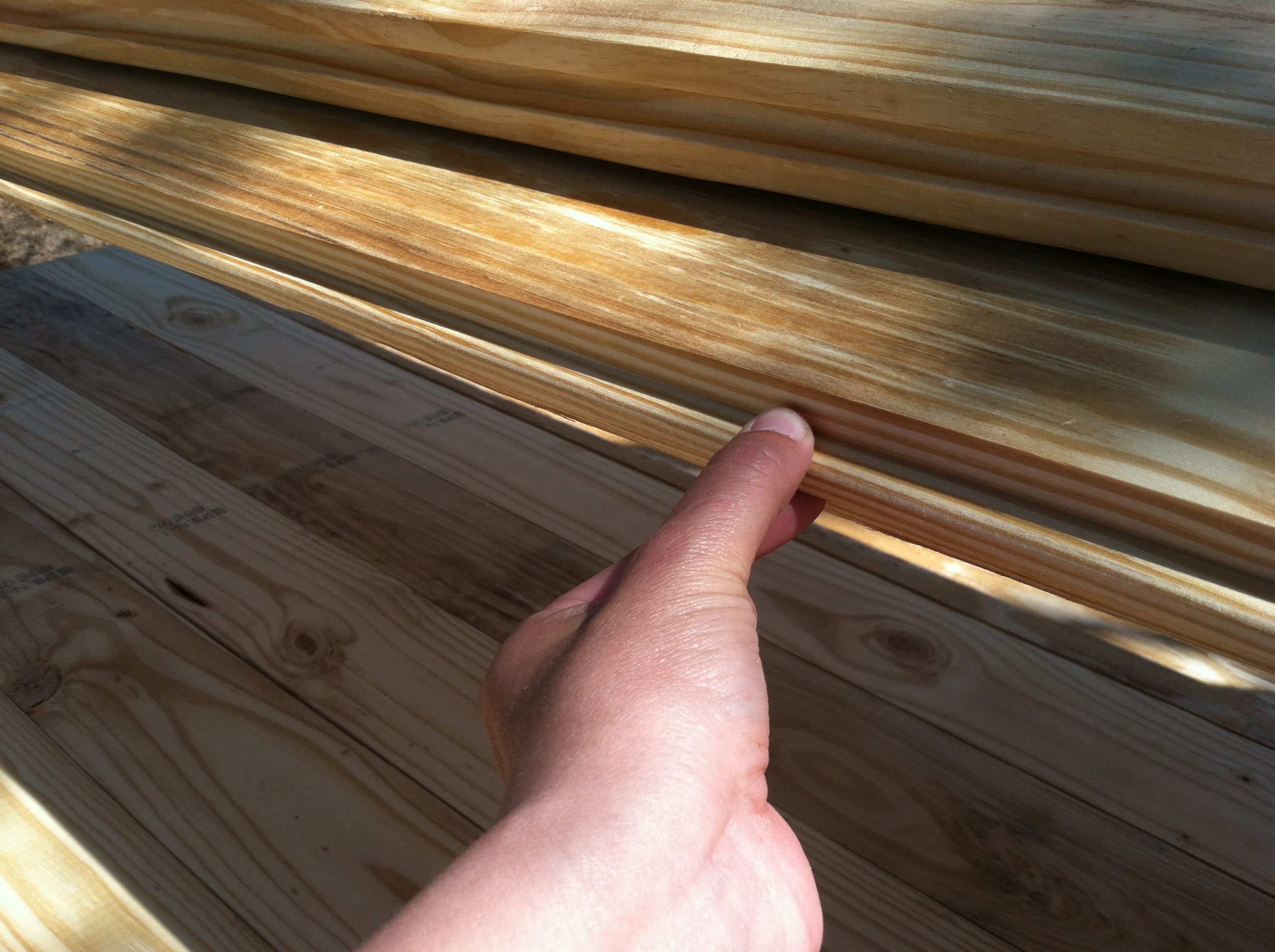 For those of you who aren’t builders, these boards are called “tongue and groove.” One side has a “tongue”…(that I’m pinching in this picture)…