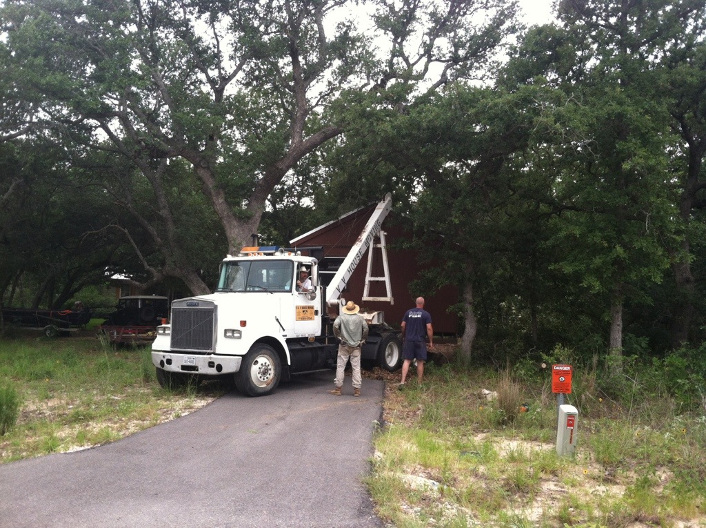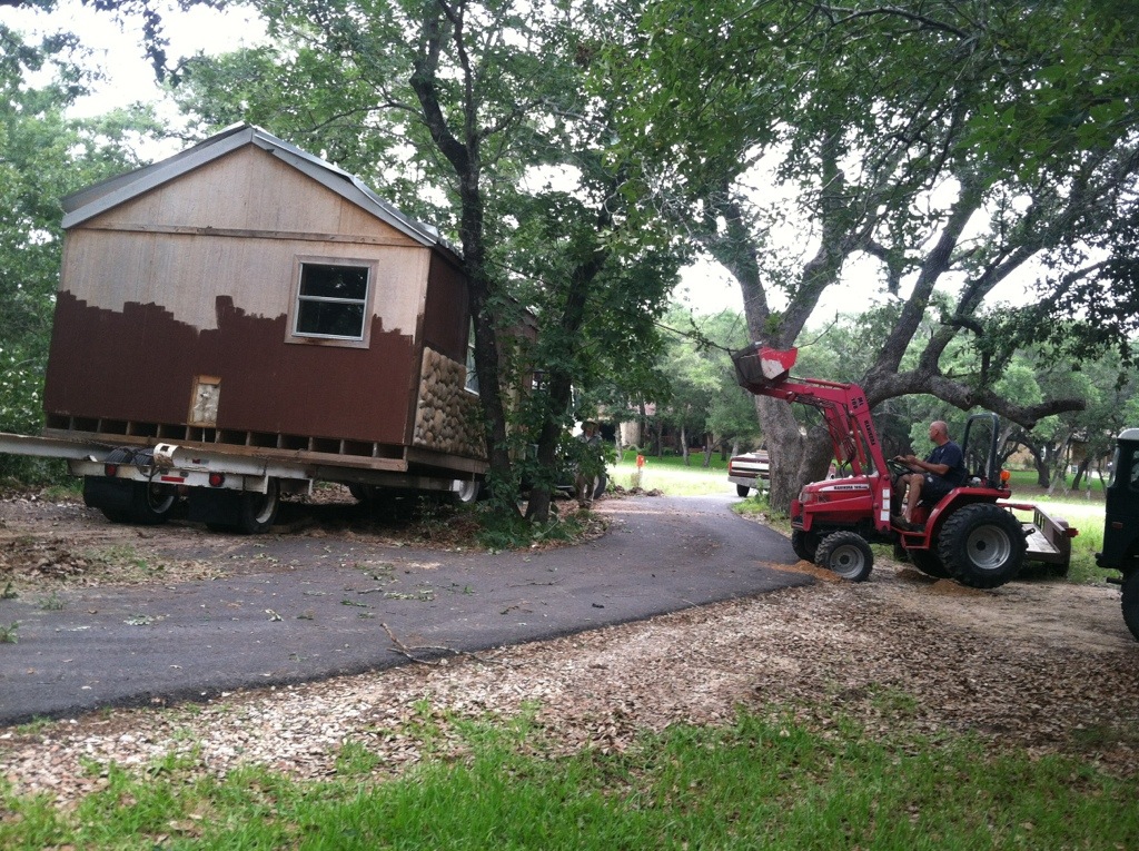 FREE!!!! Onto the land. They parked it in our new driveway and abandoned ship ’til the next morning. It was then time for the party…and 6:00. Cutting it close?? It all worked out great.