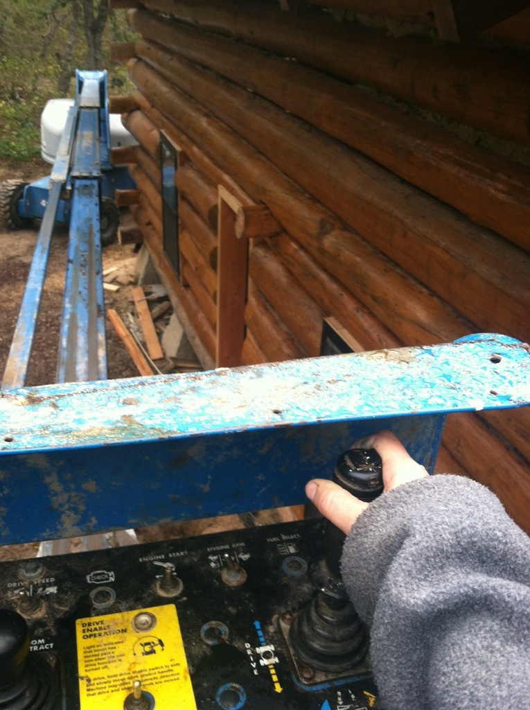 I’ve “logged” (get it?) around 12 hours a day standing on and controlling the man-lift machine we’ve been renting.