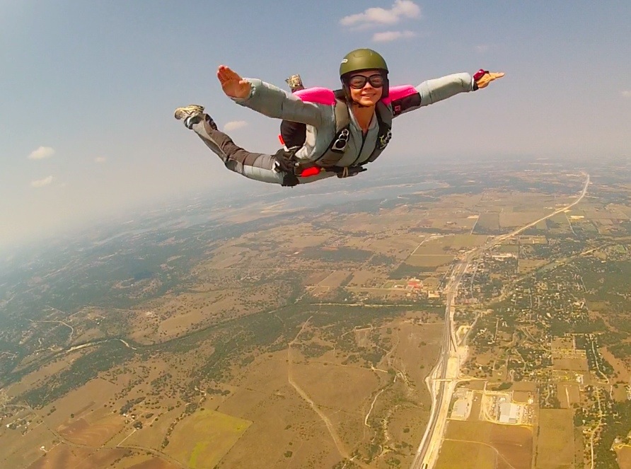 To complete her certification as a sky diver, she must complete 25 jumps…fulfilling and accomplishing each stunt or trick. There’s an instructor beside her the whole time, ready to lend a hand if needed (taking her pic, too, apparently), but also to observe her and tell her how she did, or what needs improving. (Just like the Holy Spirit!)