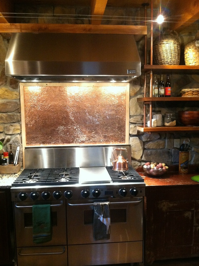 Here’s Steve’s hammered backsplash. We haven’t finished trimming it yet.