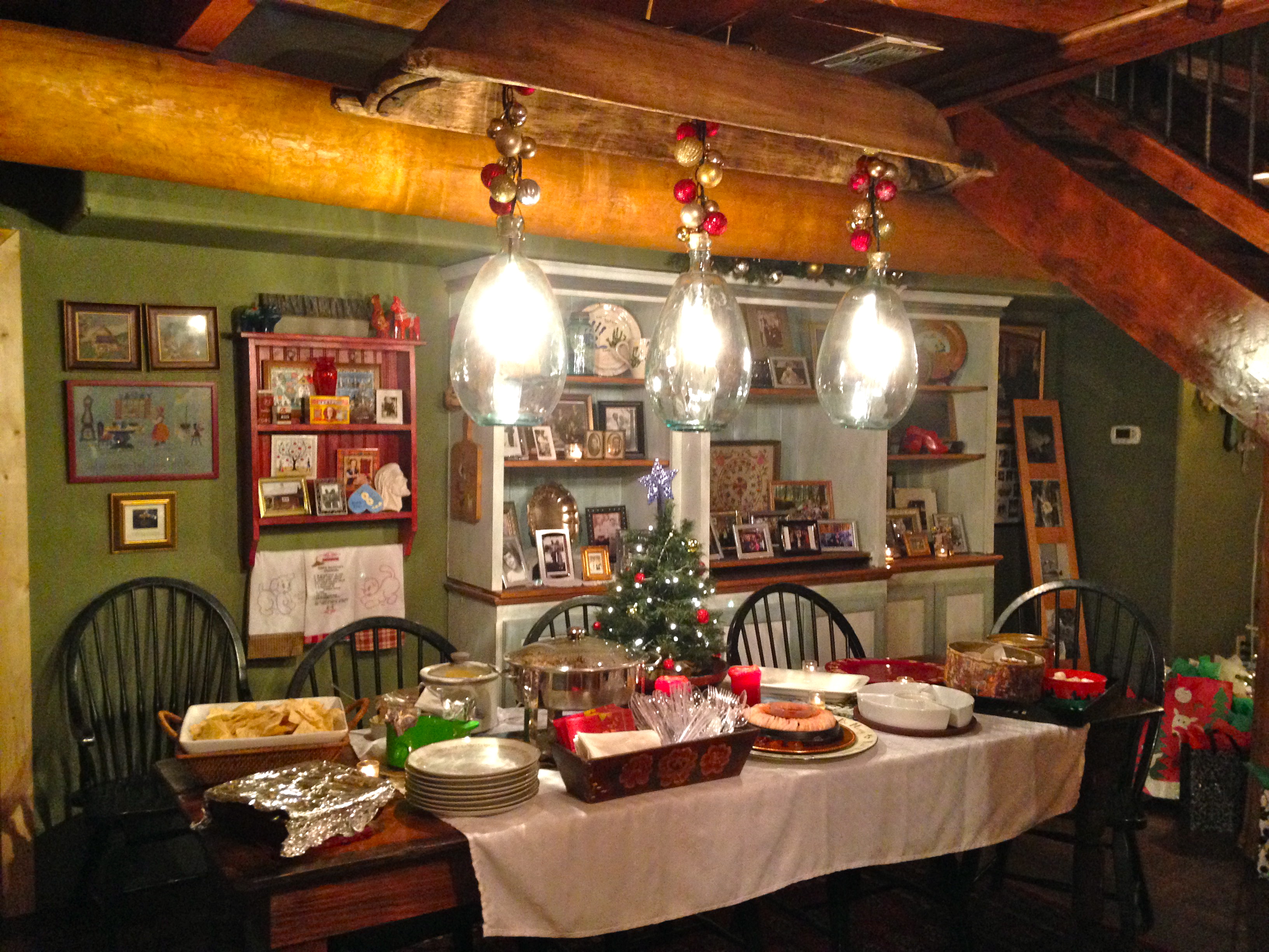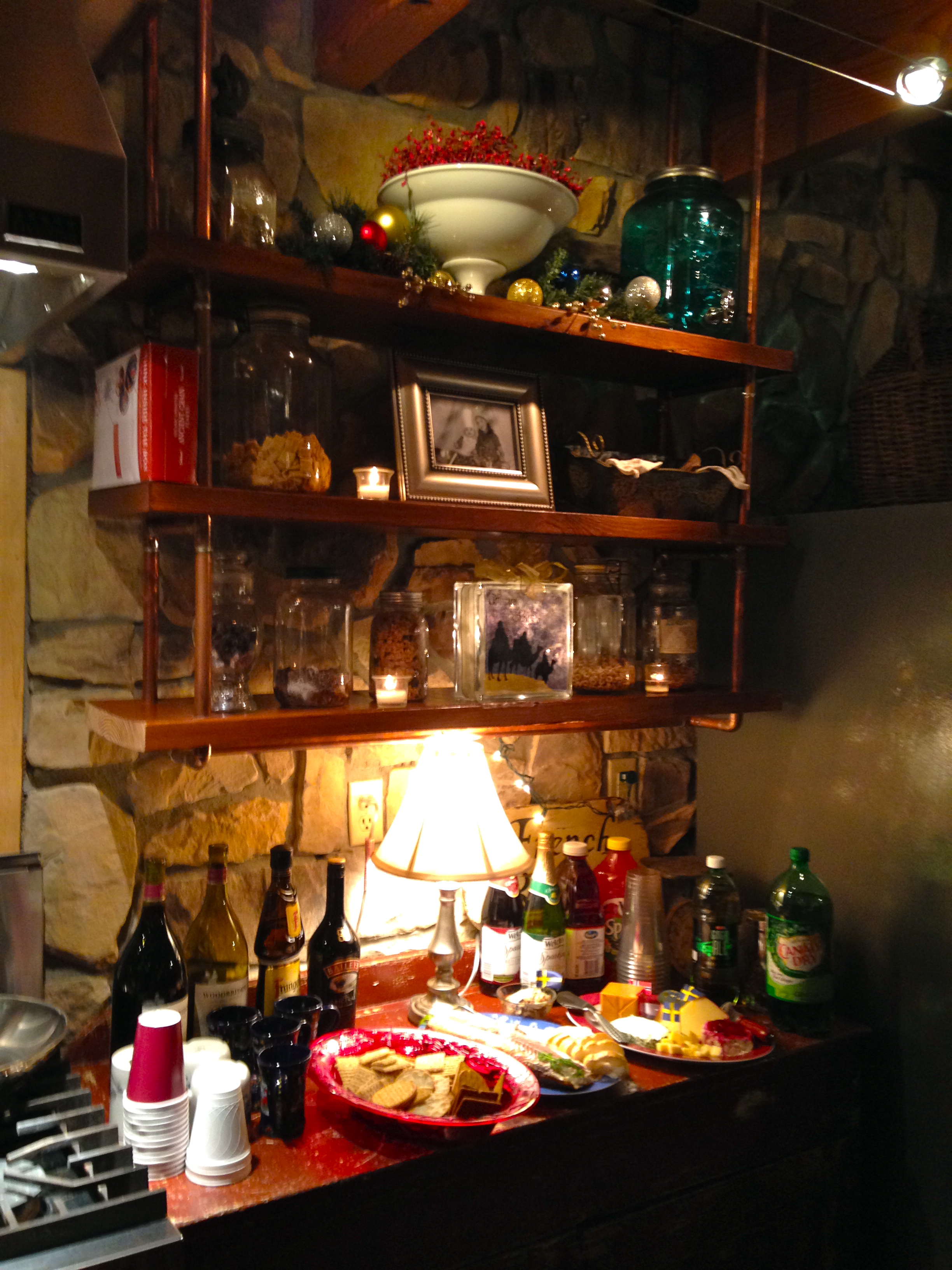 Steve made the hutch. His dad made the red shelf. Every object on the hutch and entire wall belonged to or was made by our great-grandparents, grandparents, parents, and kids. I love that the food on that table was eaten by and taught to us by those great-grandparents.