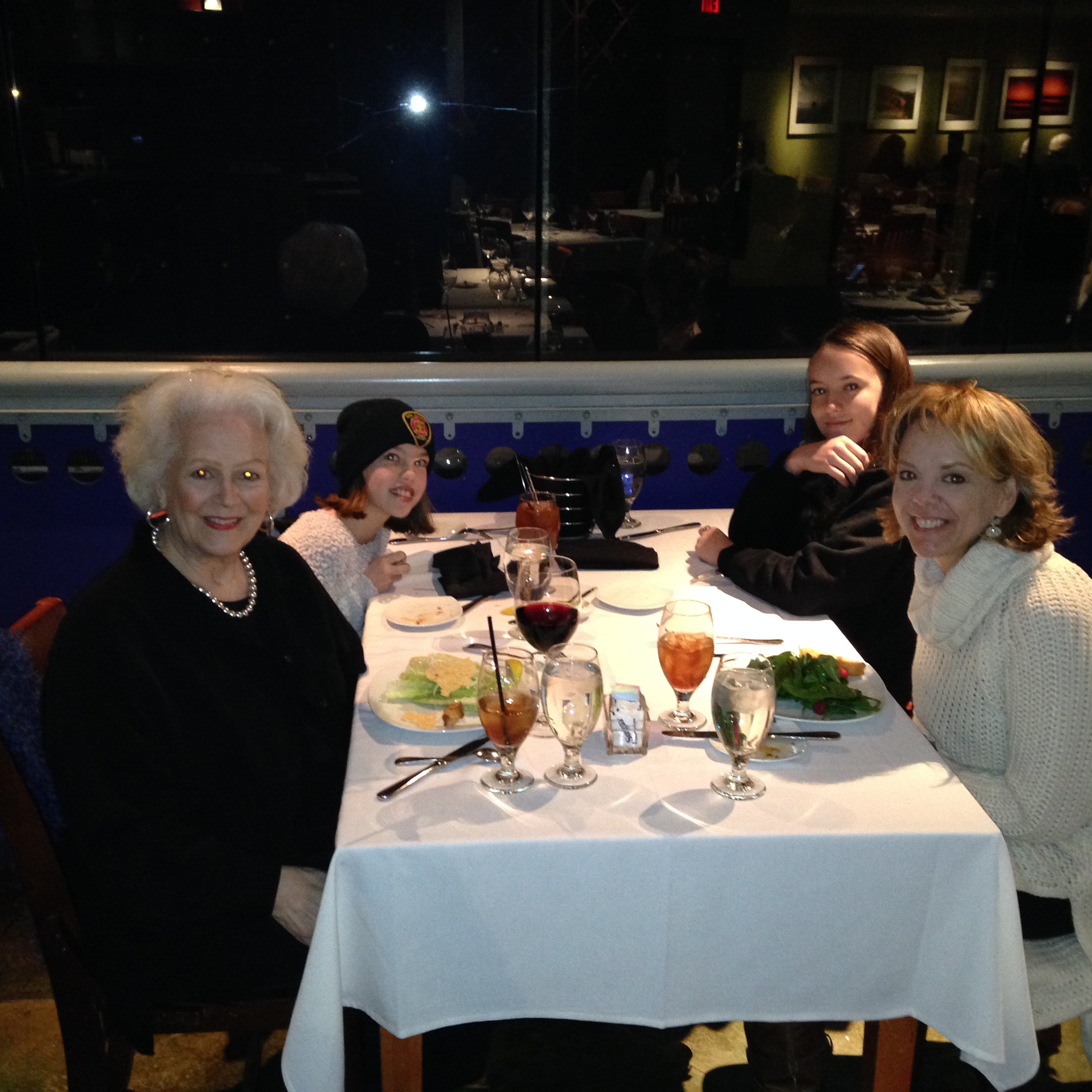 For New Year’s, Steve was at work, and the girls and I took my mother out for a gourmet lunch.  She’s now all healed from 8 months worth of back surgery, knee replacement surgery, and one carpal tunnel surgery on one hand.  I thought she deserved a nice day out.