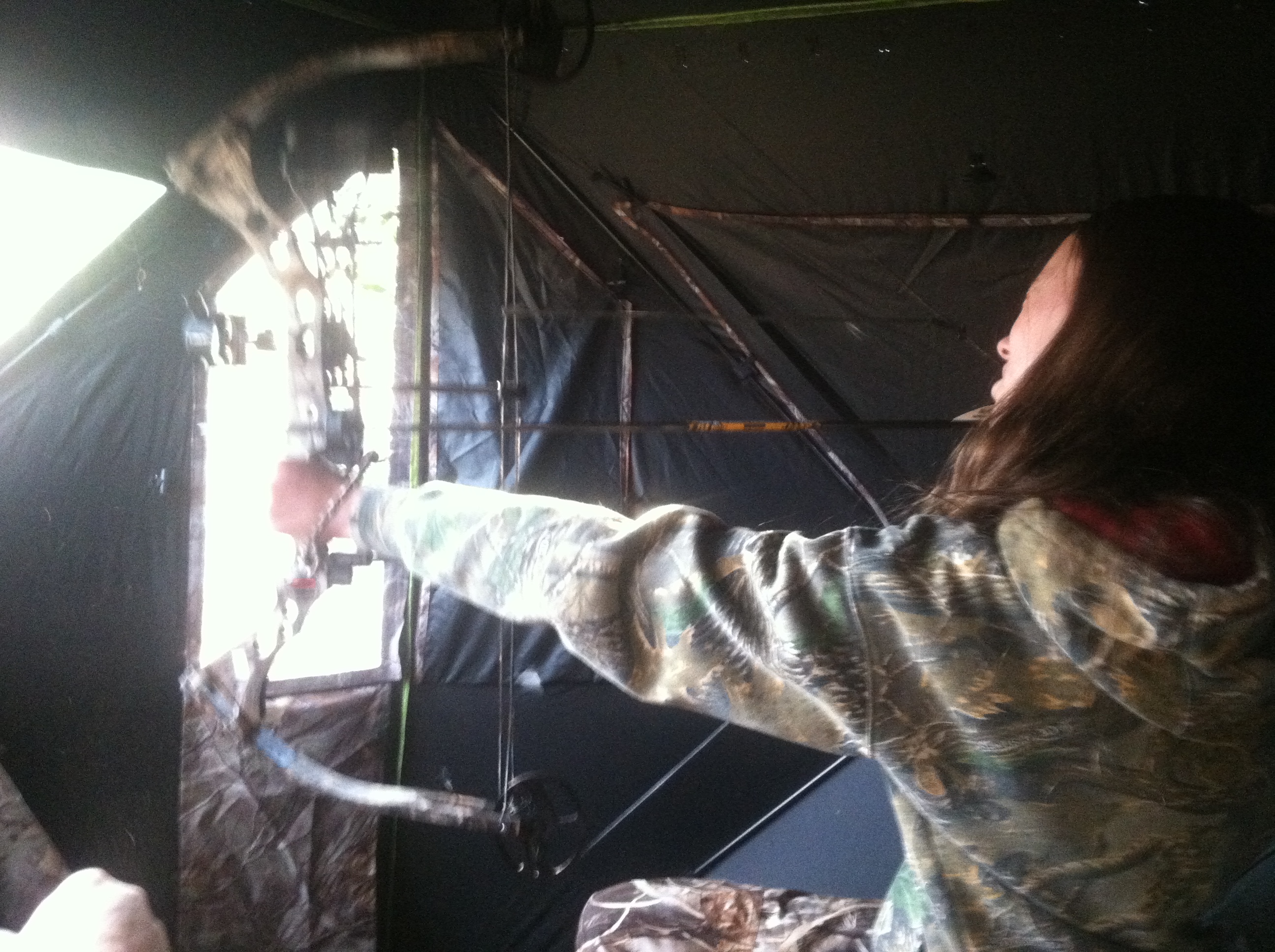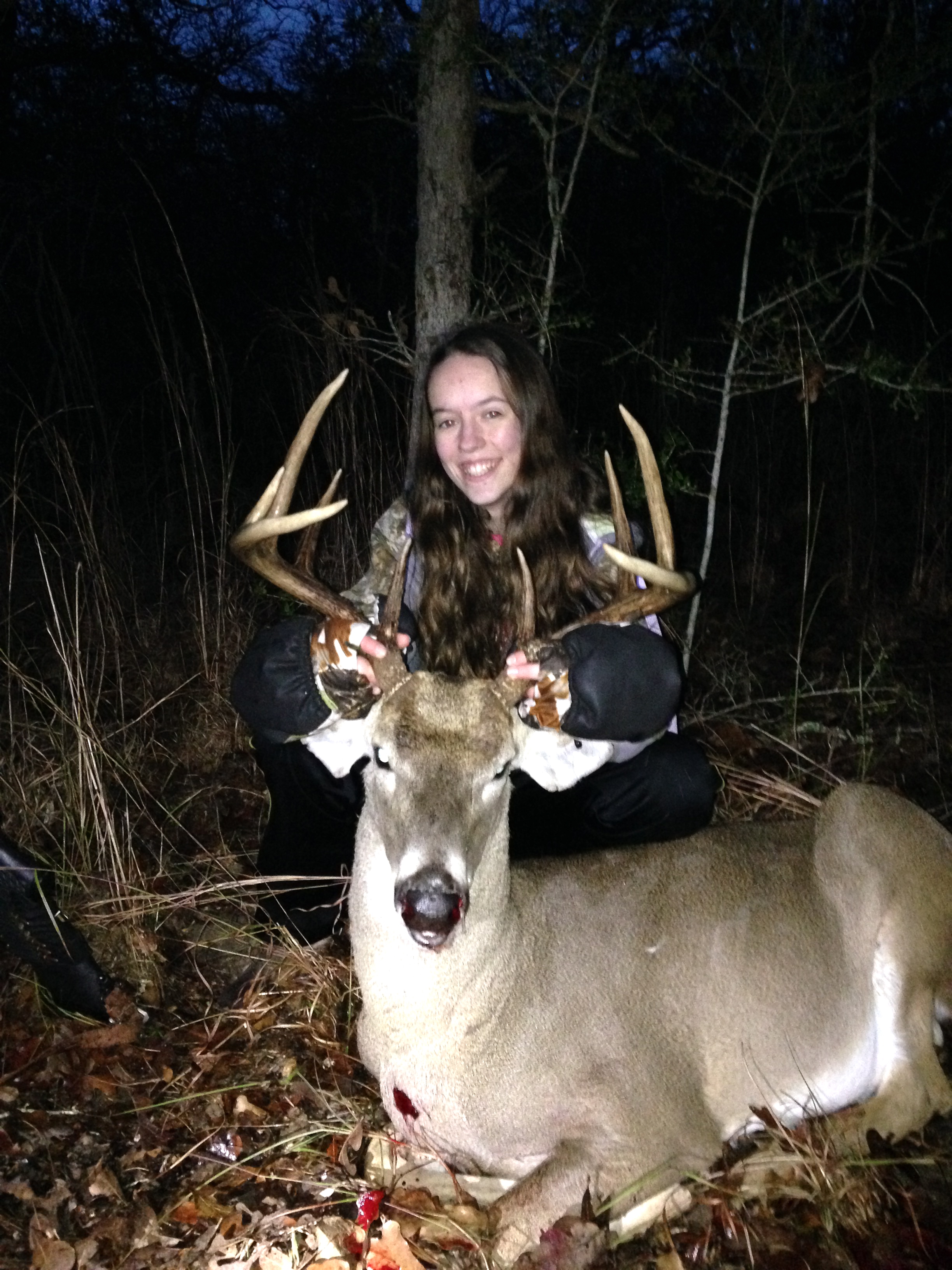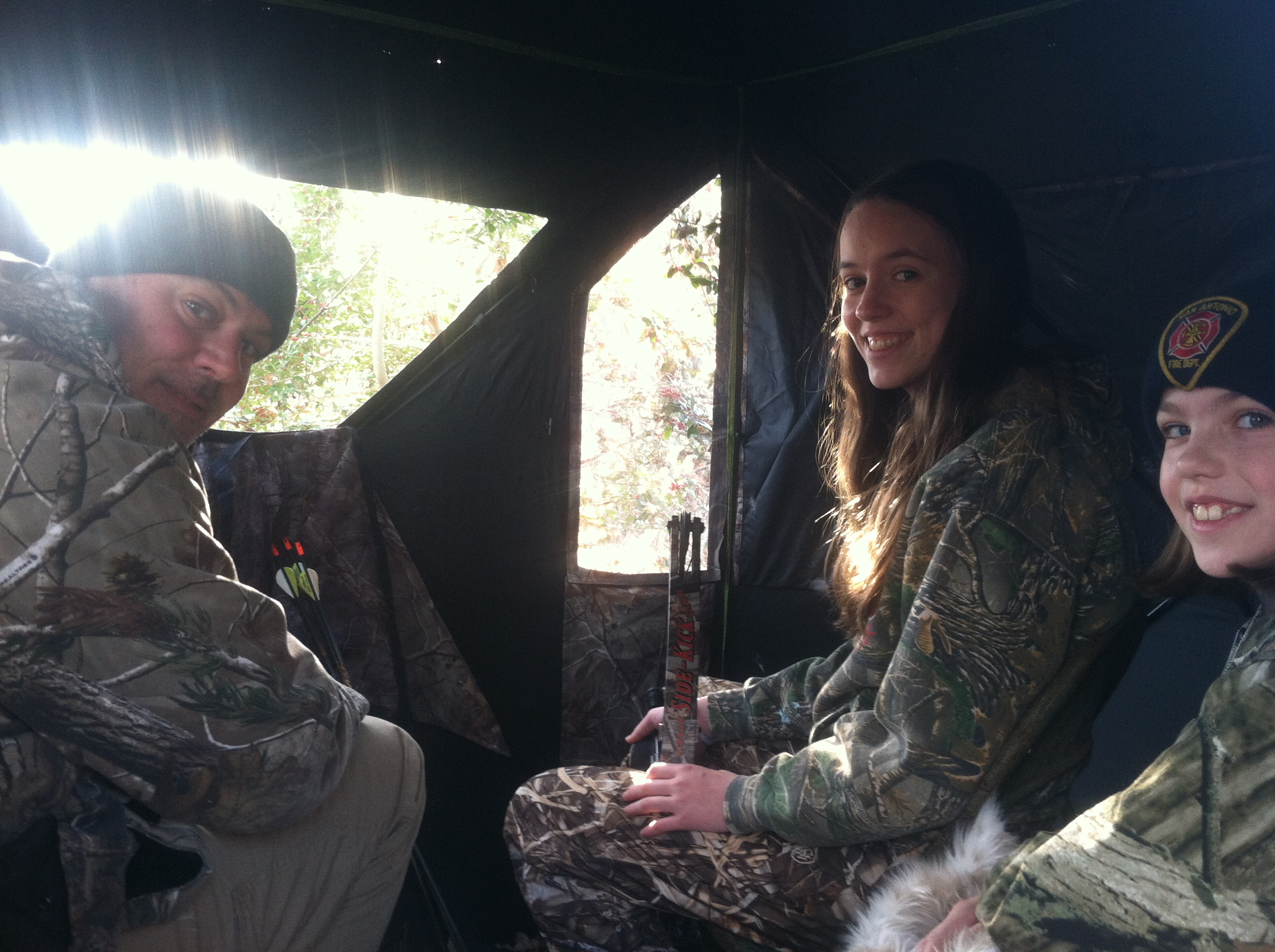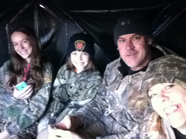 We’ve also spent the last days of deer hunting season in our backyard woods, sitting in our blind in the last hour or so of sunlight.  Both girls are hunters, but this was Reiley’s hunt.   She was hoping for her 3rd deer, and got it!