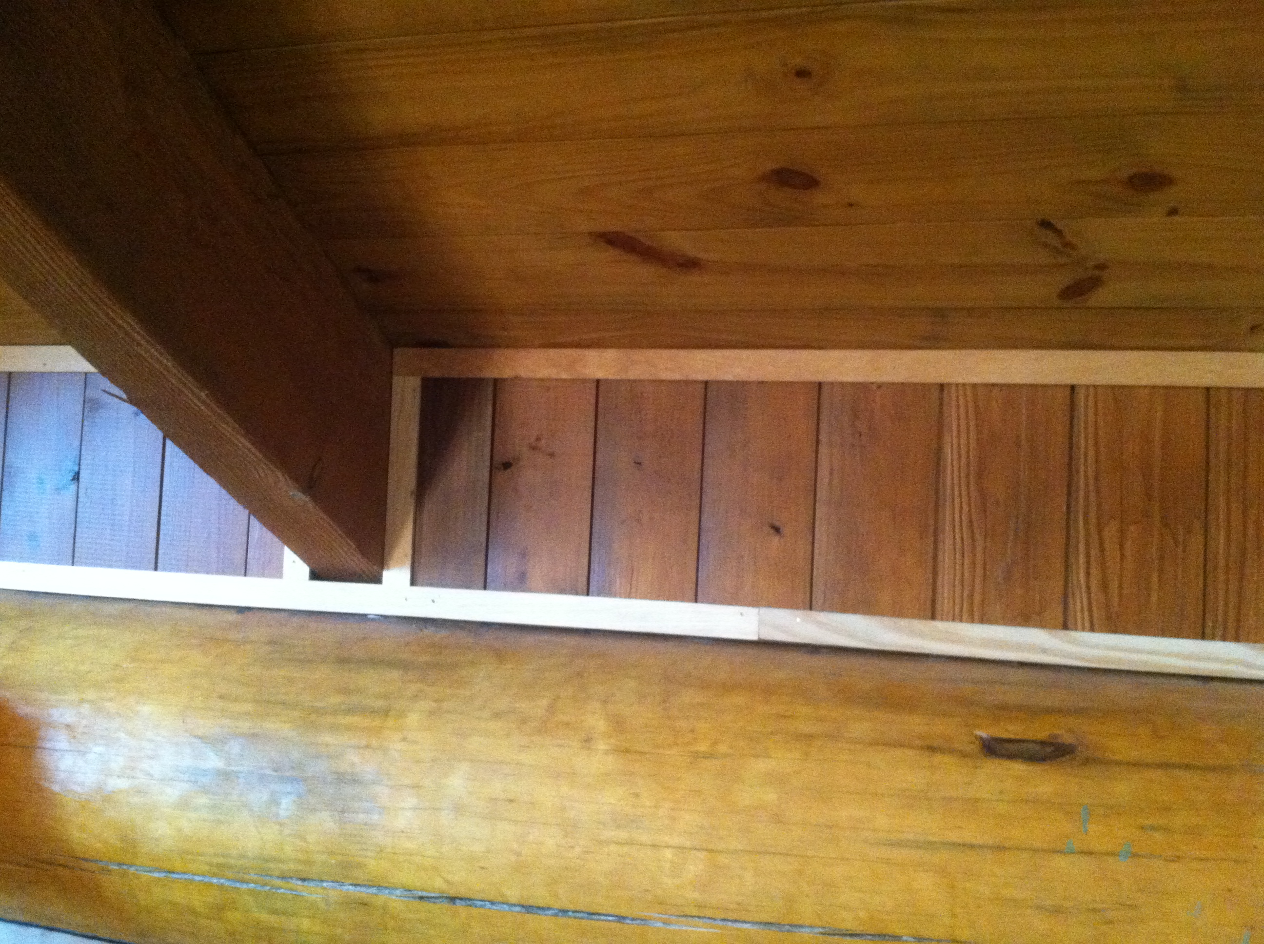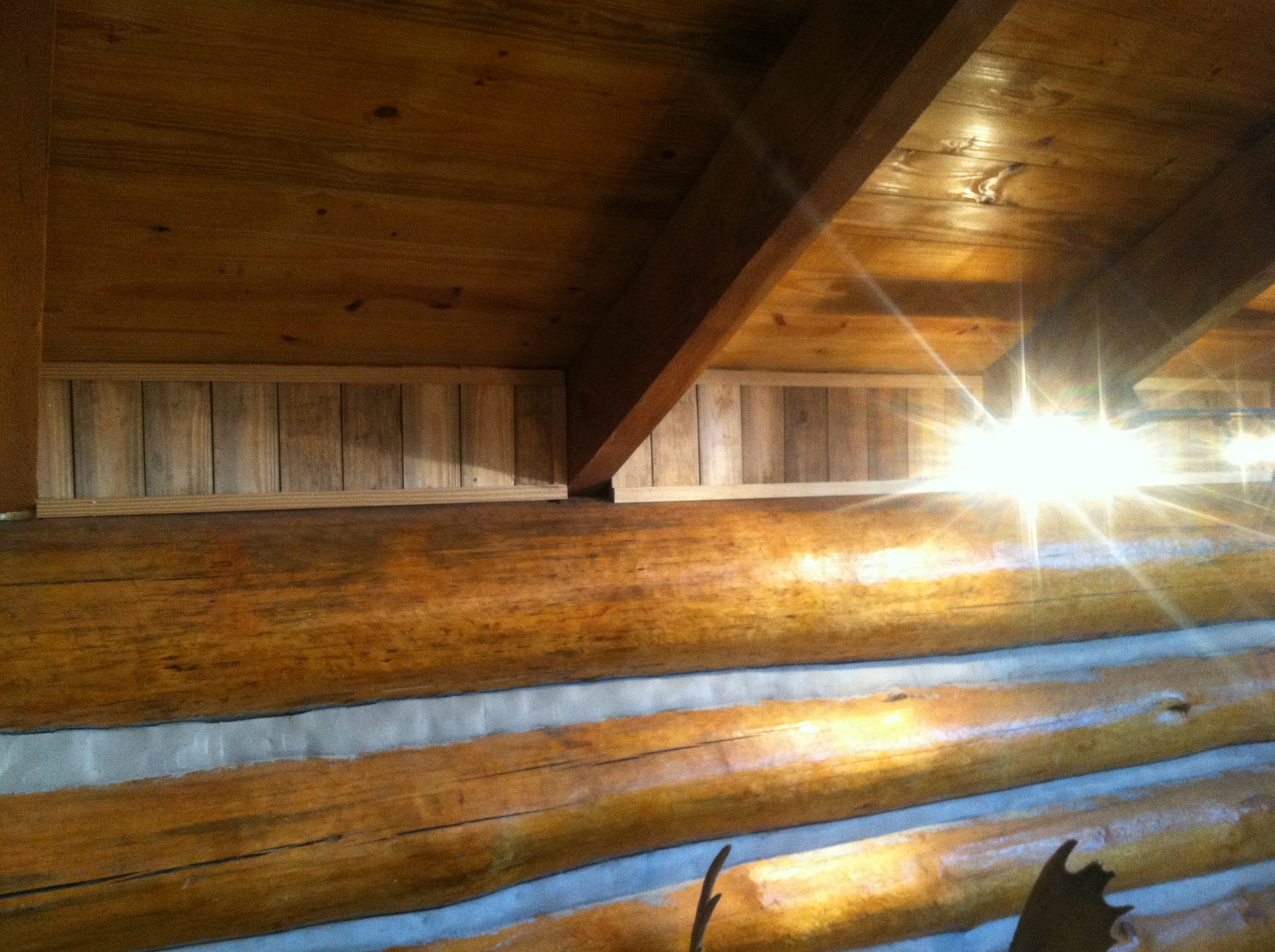 There’s VERY little left to do inside the house. In just one week, he completed ALL baseboards and trim boards in the house, and now it’s up to me to get them all stained (3 times each…ugh).  He finished chinking everything inside that needed it.  (And, it only took him a couple hours.)