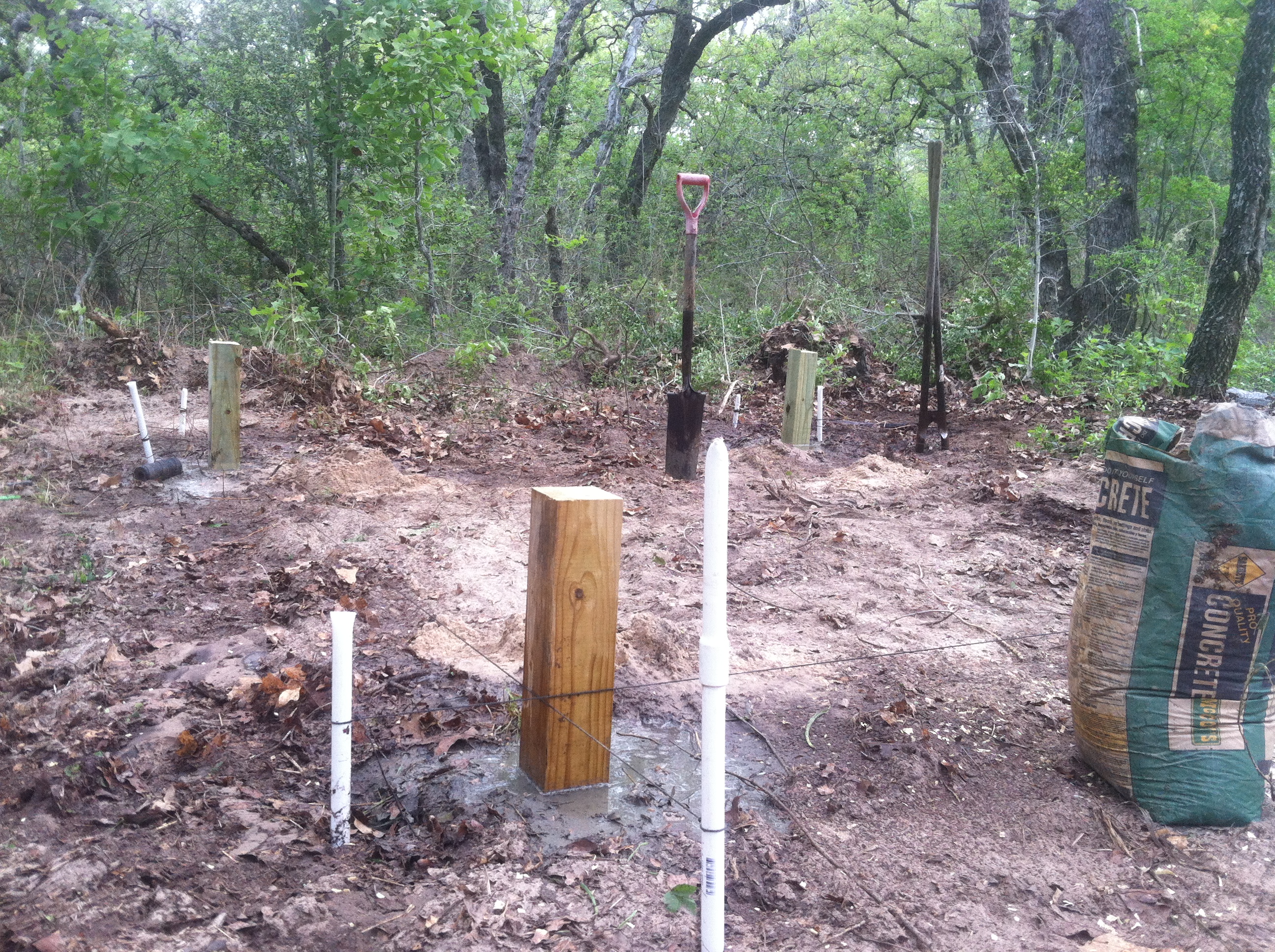 Step 2…. CAREFULLY measure.  Then Steve dug holes for the posts, and filled them with concrete. Dry overnight….