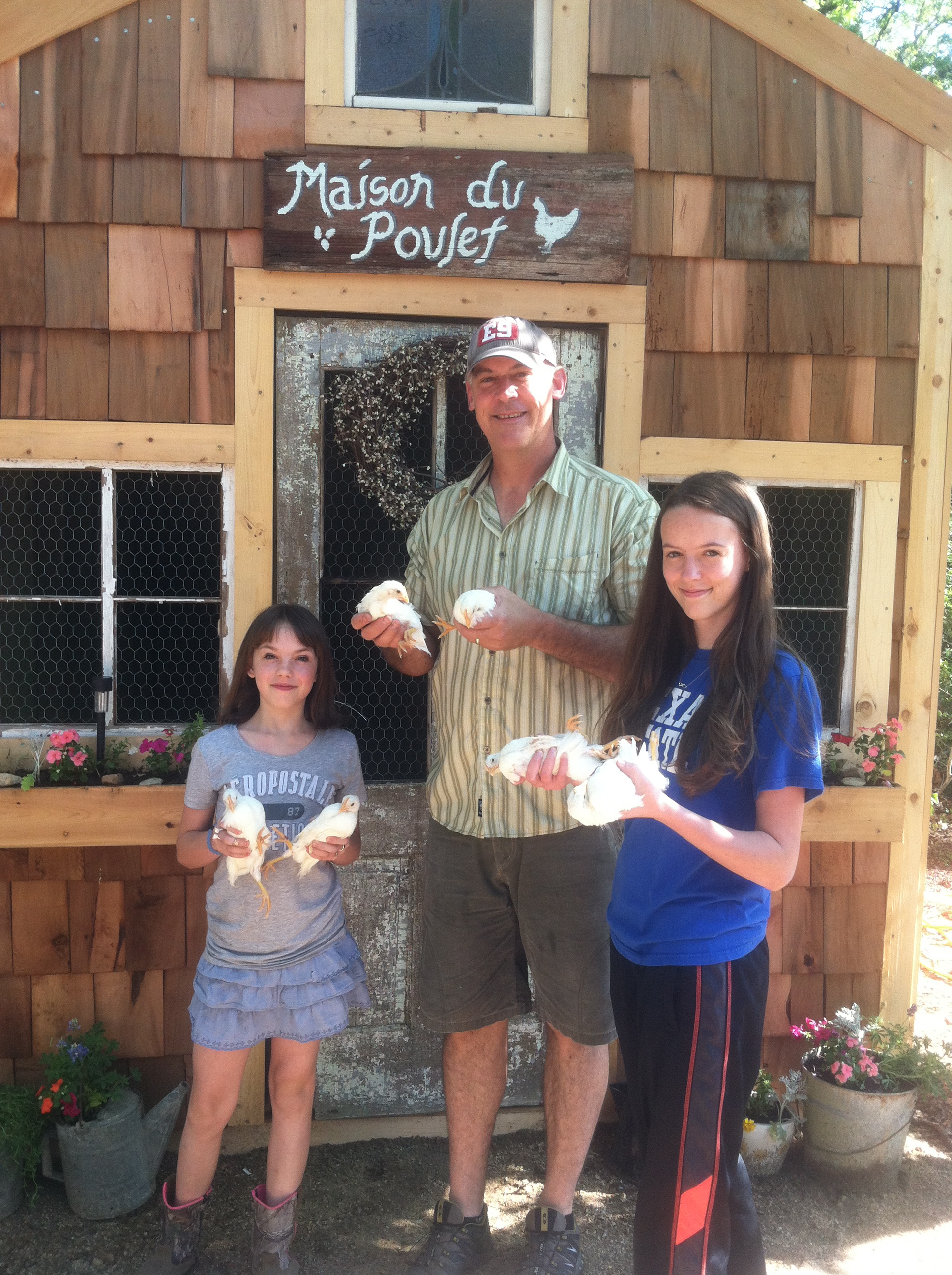 Each chicken has a name (which the girls, of course, tattooed on the chickens’ feet with black permanent marker).  The girls know them all.  I don’t.  (I confess it. I’m a bad chicken Mom.)  But, I do know my very special Lilly…only because she’s the only chick that actually LOVES being held.