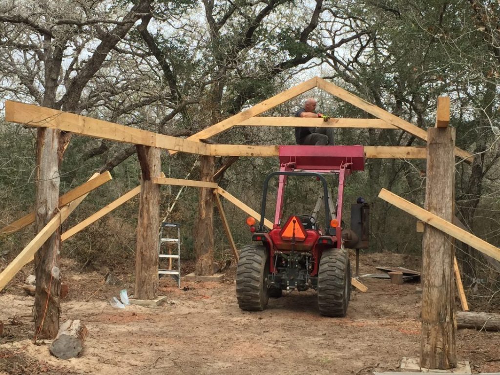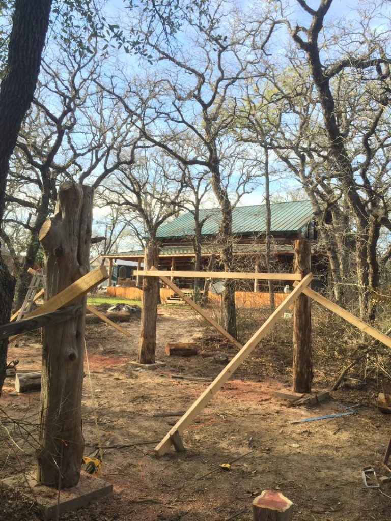 Steve said that we already had the logs and metal for the roof…to build a pavilion.  The logs had been leftover from the house, and were just laying in our front yard.  All we’d need to buy were timbers to hold up the roof.  Normally, they would have cost thousands of dollars.  YIKES.  However, God…once again…put us in just the right place at just the right time to get some for only $300.  Is that God, or what?  He presents the Plan, and as we obey, He provides and paves the way.