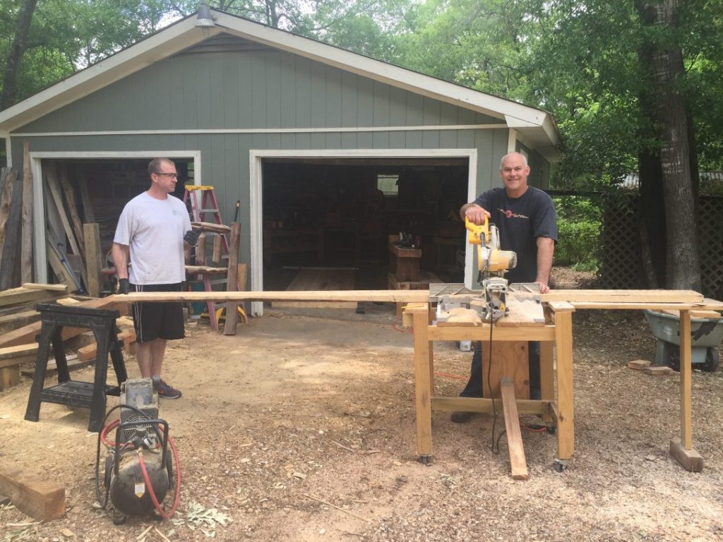 Once the pavilion was up, we needed a table.  God pointed us in the right direction to get all the wood we needed for less than $200, and he and our friend Jeremy started building it.