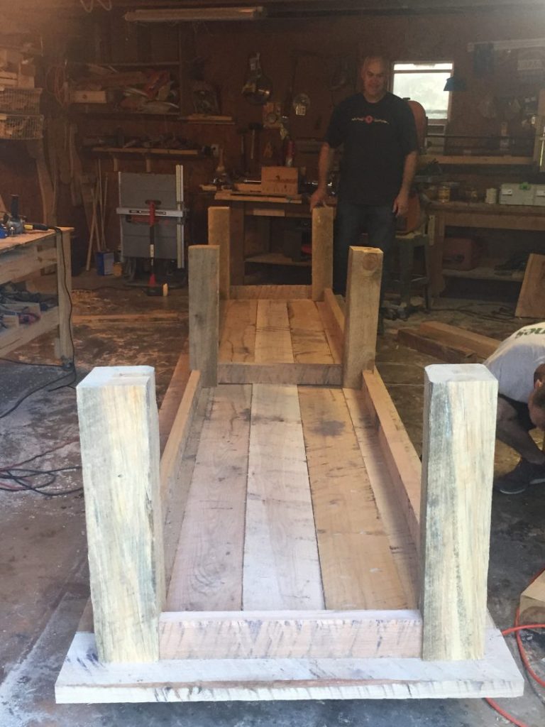 If this table seems LARGE…it is not an optical illusion.  It’s 16’ long, 40” wide, and 911 pounds!   It can seat 19-20 people.  Oak.  (And Steve and Jeremy would be happy to custom make one for anyone else who wants one…)
