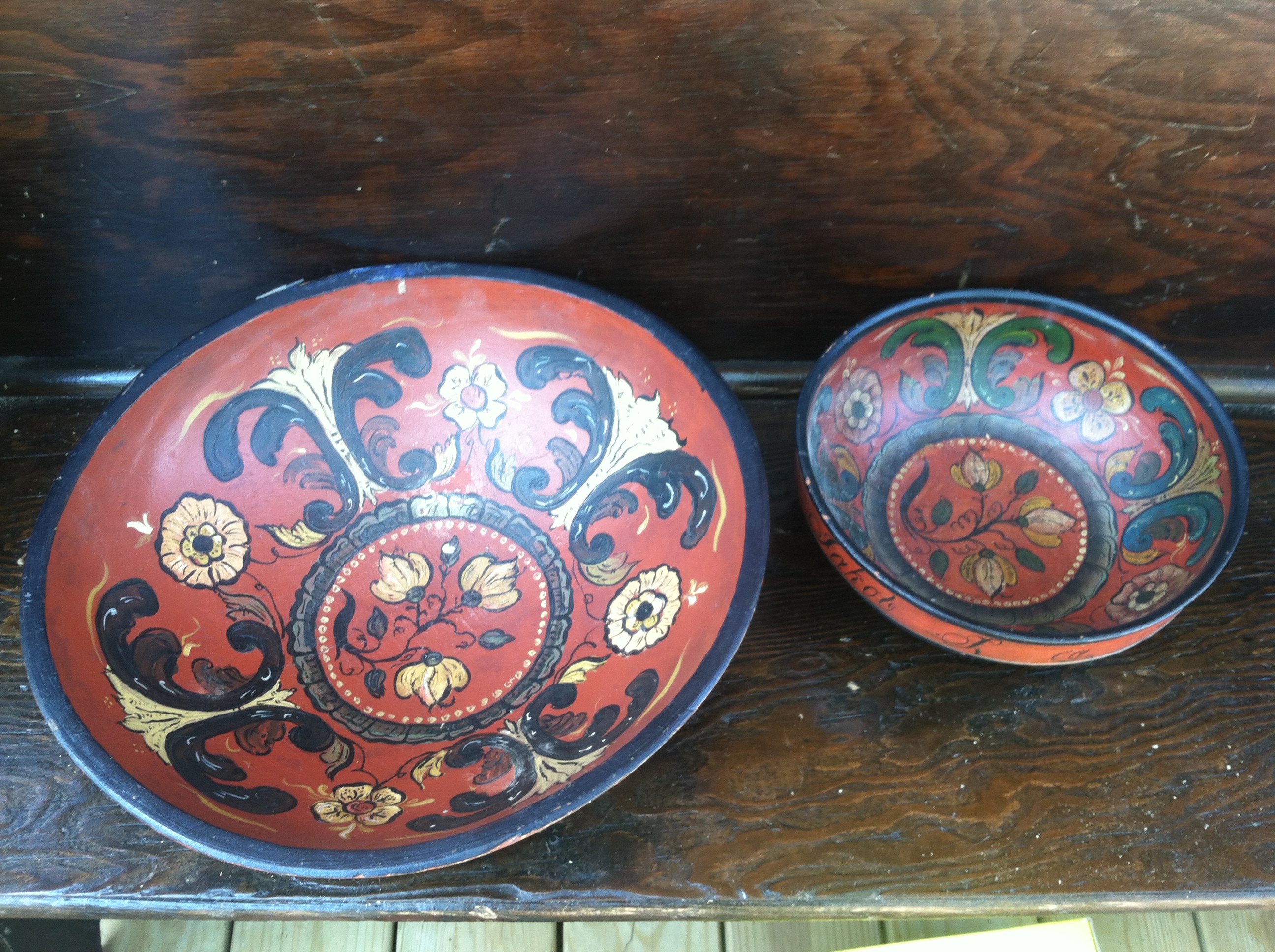 Buried under some hay, she found an old wooden dough bowl that had been there a very long time. It had belonged to the previous homeowner (today it’s at least 80 years old). She took it to my grandmother Florence who proceeded to teach my mother the passed-down heritage of Rosemaling, as Marie had taught her decades before. Heritage…