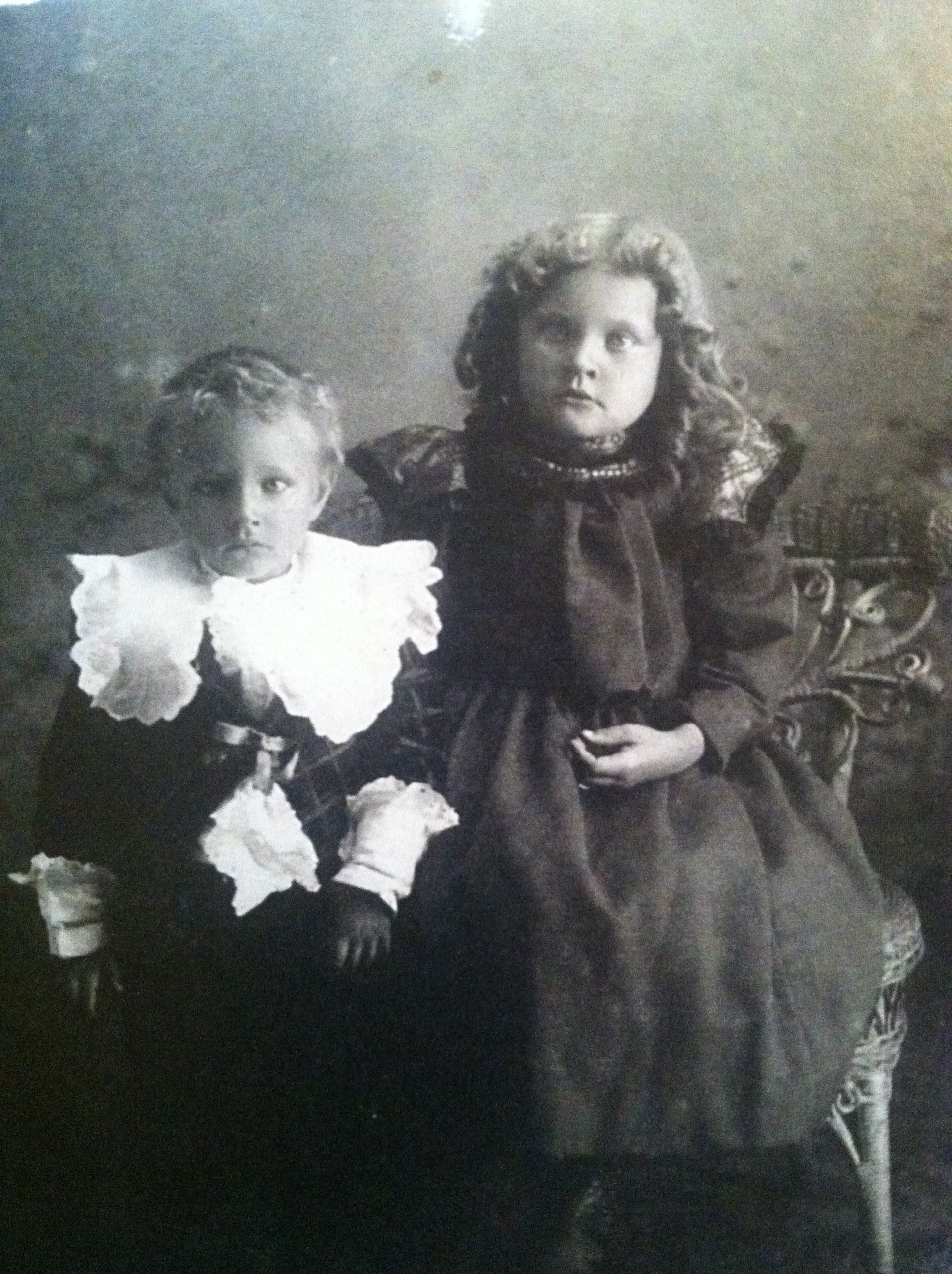 In a few of the boxes, I found pictures of my great-great-grandparents. (My grandma Florence’s grandparents!) Their names were Jakob and Anne Berg. They lived in Norway. They had these two small children..