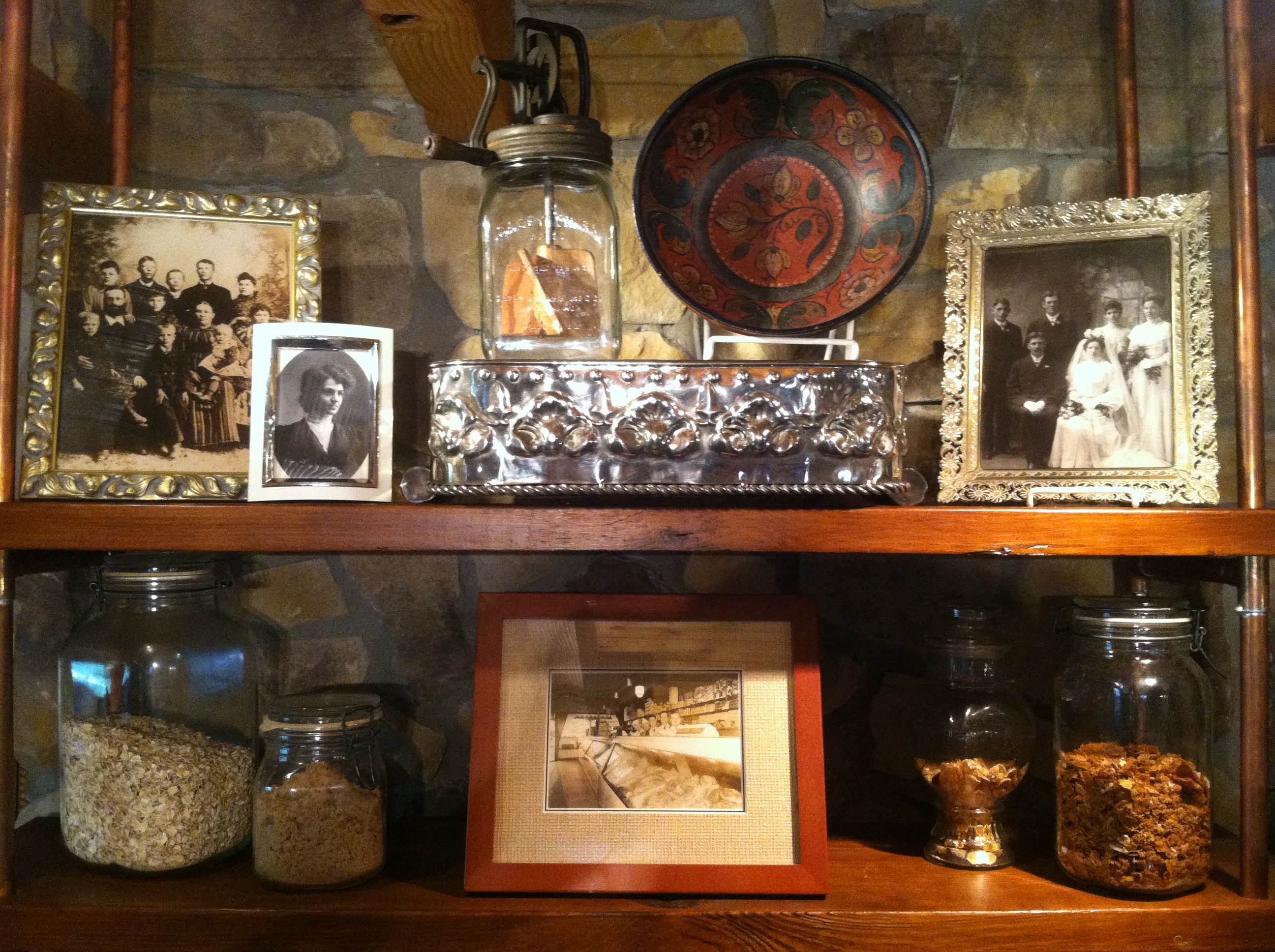 I have boxes and boxes of family photographs and heirlooms in storage. But, this log house doesn’t have a garage or attic like our old house had, where they were once stored. (Hmm..)